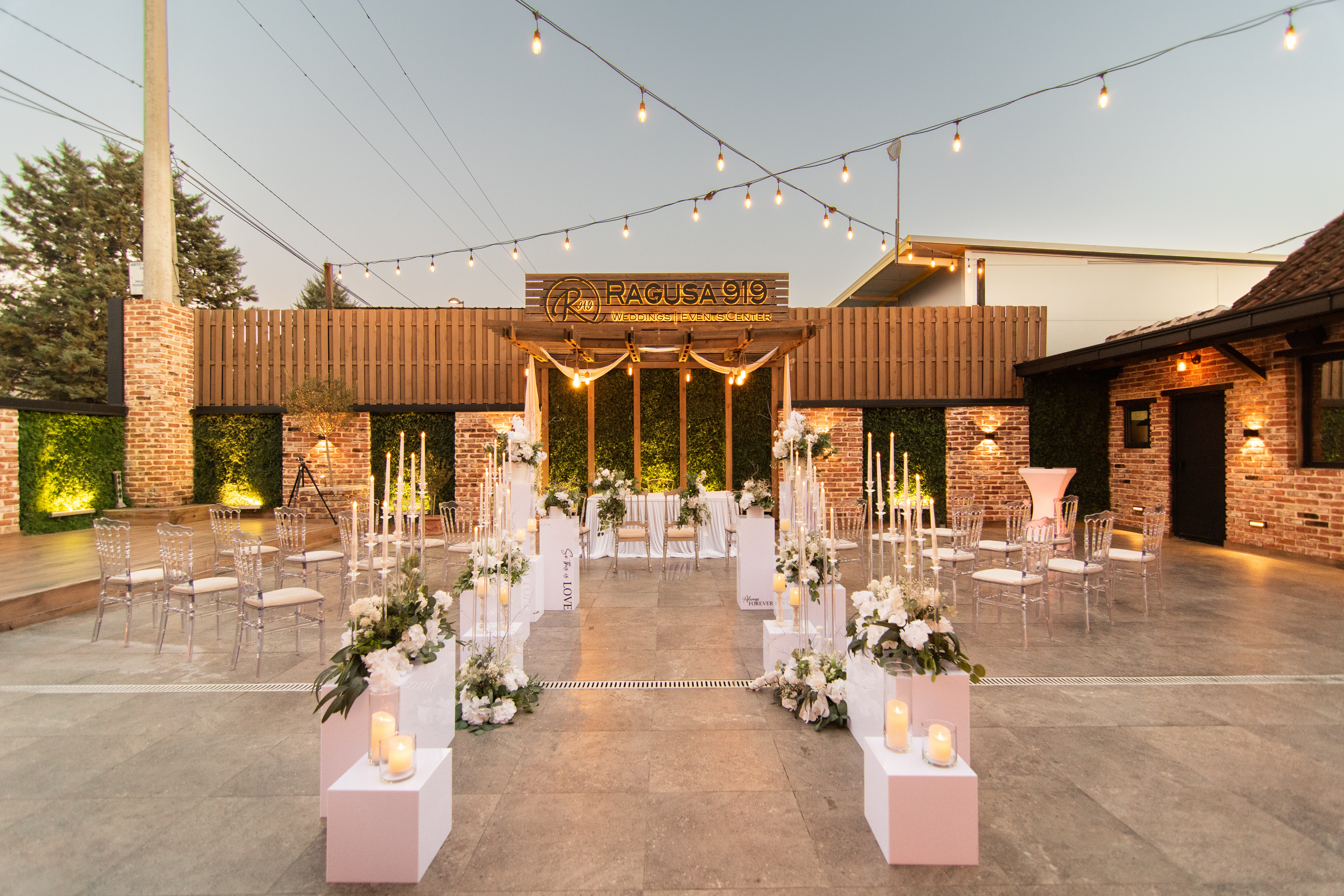 ,,Рагуза 919’’ ги постави темелите на ,,Рагуза Груп’’ и низ годините континуирано го докажува својот квалитет. Денес овој ресторан е целосно реновиран со луксузен амбиент и модерен ентериер. Секој детал е внимателно осмислен, од целокупната декорација до организацијата на матично во склоп на објектот. Идеално место за организирање на вашата свадба или настан од секаков тип. Креираме спомени кои се паметат цел живот и ја споделуваме радоста со нашите задоволни клиенти.